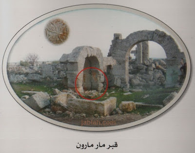 فقد ذكر هذا الكتاب ان مار مارون اختار أن يعيش في العراء و اختار قمة فيها معبد وثني بنى عليها كوخا صغيرا من الجلود قلّ أن يلجأ اليه ، و استطاع ان يشفي المرضى بالدعاء لهم ، و عند وفاته قام سكان بلدة مجاورة ببناء ضريح فخم له دون تحديد المكان الدقيق لهذا الضريح .